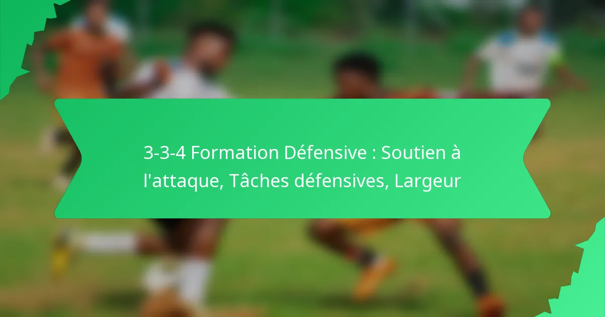 La formation défensive 3-3-4 au football est une configuration tactique qui équilibre une forte présence offensive avec des responsabilités défensives solides. Composée de trois défenseurs, trois milieux de terrain et quatre attaquants, cette formation permet aux équipes de presser haut tout en créant de nombreuses occasions de marquer. Une communication efficace et un bon positionnement sont cruciaux pour que les défenseurs maintiennent la stabilité et soutiennent les transitions vers l’attaque.