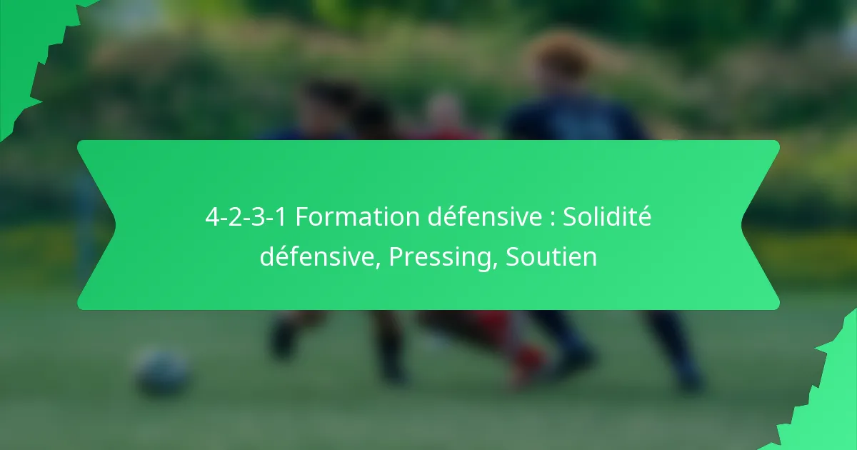 La formation défensive 4-2-3-1 est un dispositif tactique au football qui met l’accent sur la solidité défensive tout en permettant un pressing efficace et un soutien en attaque. Elle se compose de quatre défenseurs, deux milieux de terrain centraux, trois milieux de terrain offensifs et un attaquant, offrant une structure équilibrée pour la défense et l’attaque.