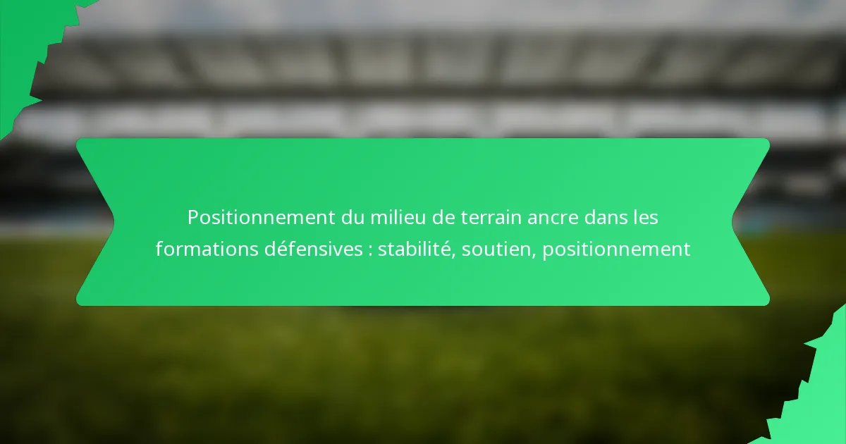 Comment un milieu de terrain ancre fournit-il de la stabilité en défense ?