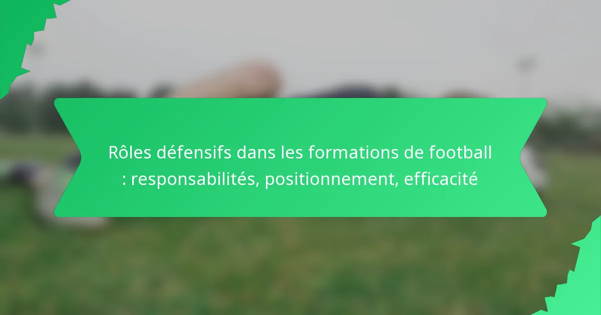 Les rôles défensifs sont cruciaux pour façonner la stratégie globale d’une équipe, car ils dictent la capacité d’une équipe à empêcher l’adversaire de marquer. Chaque défenseur a des responsabilités spécifiques qui, lorsqu’elles sont exécutées efficacement, améliorent la structure défensive de l’équipe et contribuent à des résultats réussis lors des matchs.