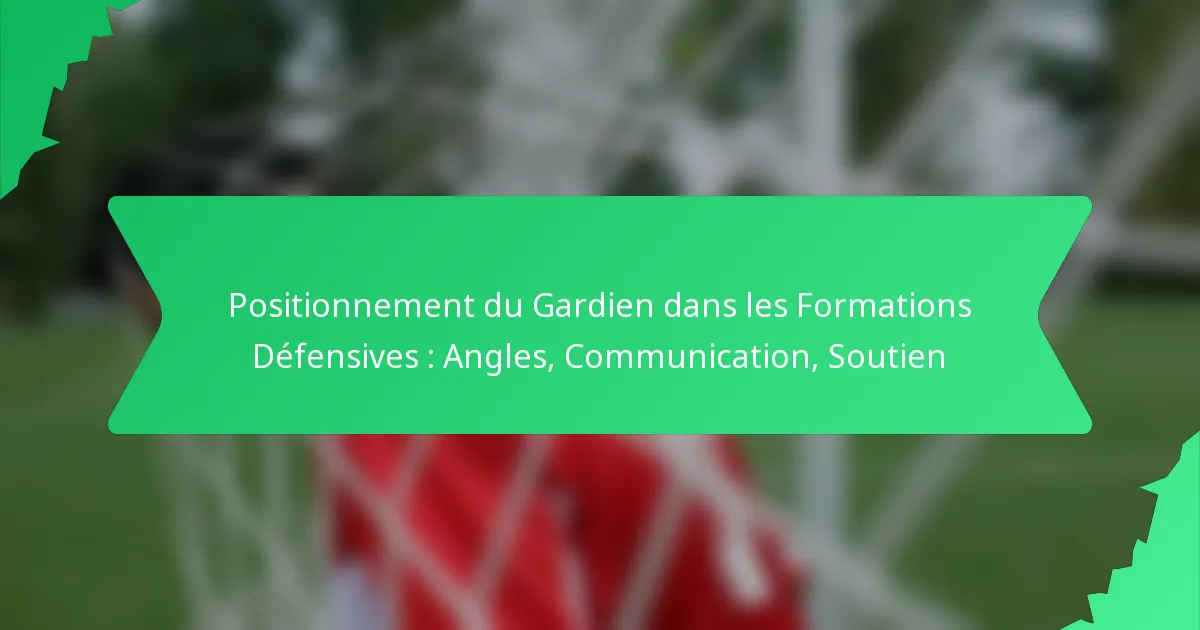 Le positionnement des gardiens de but dans les formations défensives est essentiel pour maintenir des angles efficaces, assurer une communication claire et fournir un soutien aux défenseurs. En maîtrisant leur positionnement, les gardiens peuvent couvrir efficacement le but et réagir rapidement aux menaces, adaptant leur posture en fonction de la dynamique du jeu. Des angles appropriés améliorent non seulement les capacités de blocage des tirs, mais compliquent également les opportunités de marquer pour les adversaires, tandis qu’une communication forte favorise une structure défensive bien organisée.