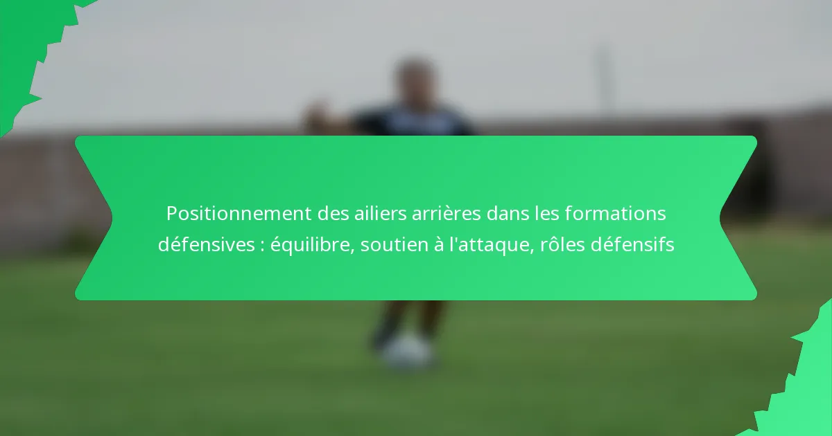 Les arrières latéraux sont essentiels dans les formations défensives, trouvant un équilibre entre les responsabilités défensives et le soutien offensif. Positionnés largement sur les flancs, ils améliorent la structure d’une équipe en fournissant une couverture en défense tout en offrant des options pour faire avancer le ballon lors des phases offensives. Leurs rôles peuvent varier considérablement selon les différentes formations, influençant à la fois la solidité défensive de l’équipe et ses capacités offensives.